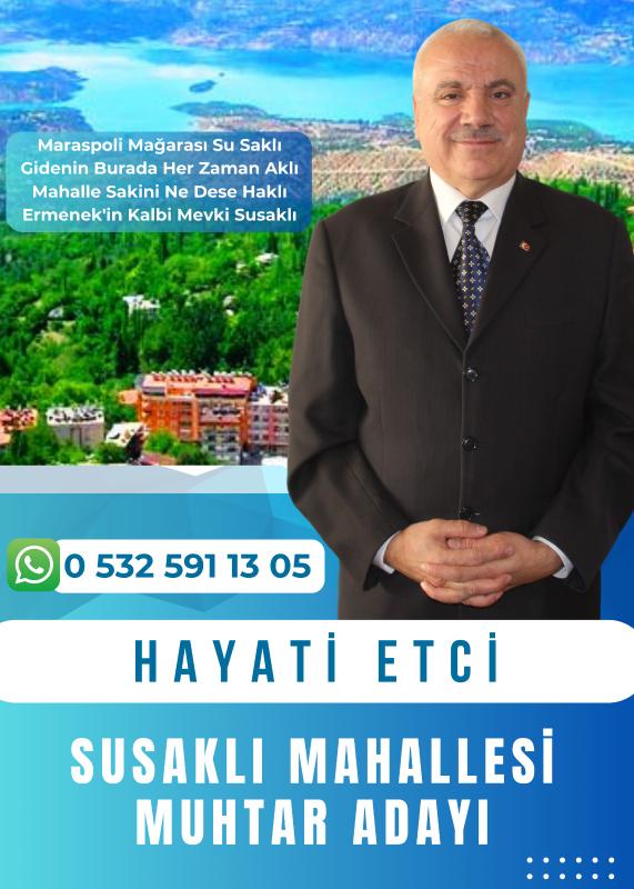 Ermenek’in Susaklı Mahallesi’nde muhtar adaylığını duyuran Hayati Etçi projelerini sosyal medya hesabından duyurdu.